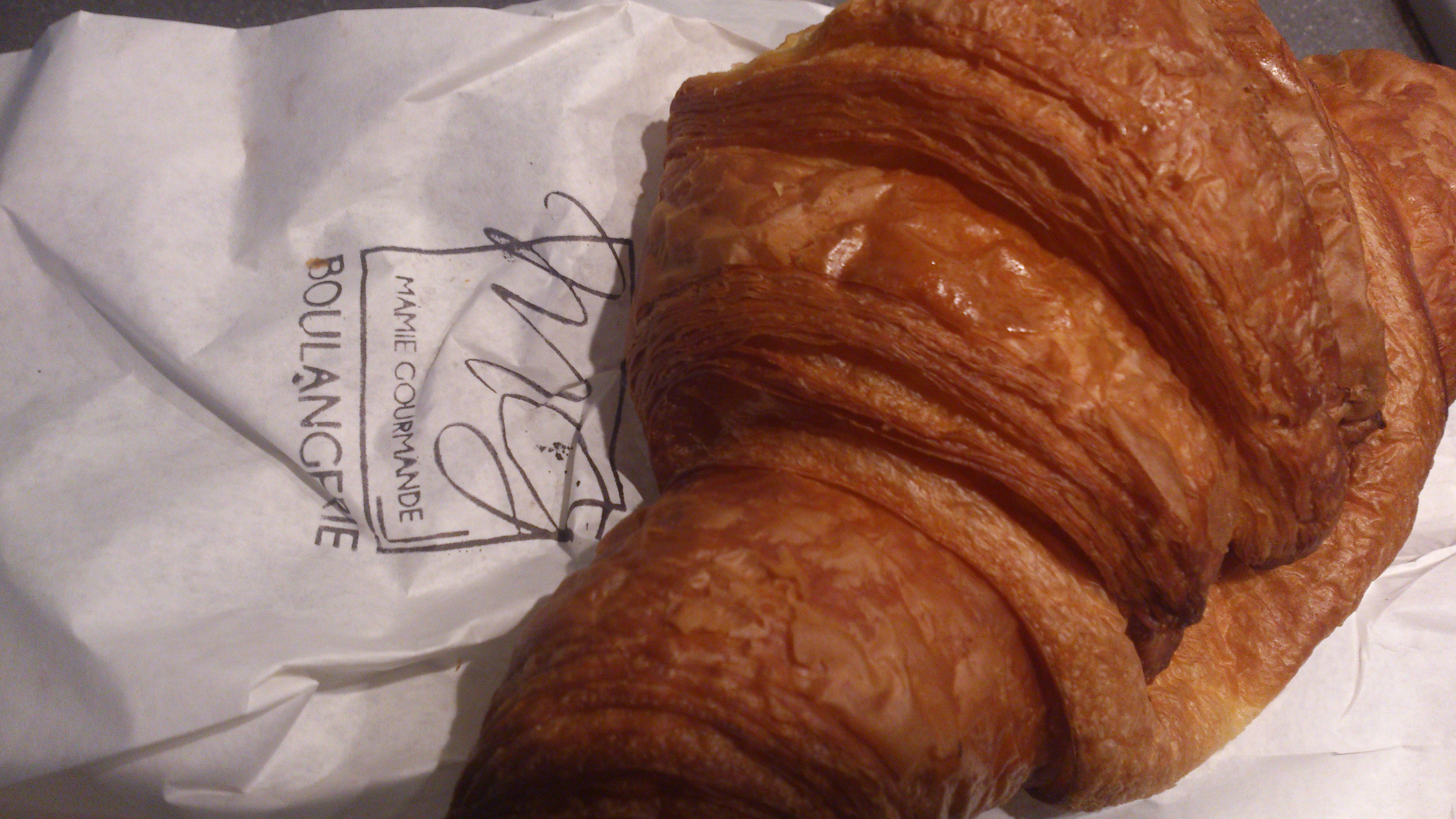 Klein geluk: de dag beginnen met een fantastische knapperige croissant, gemaakt door de Franse bakker die vanochtend heel vroeg is opgestaan en met een glimlach van oor tot oor de nog warme croissant in het zakje deed en aan mij overhandigde.
